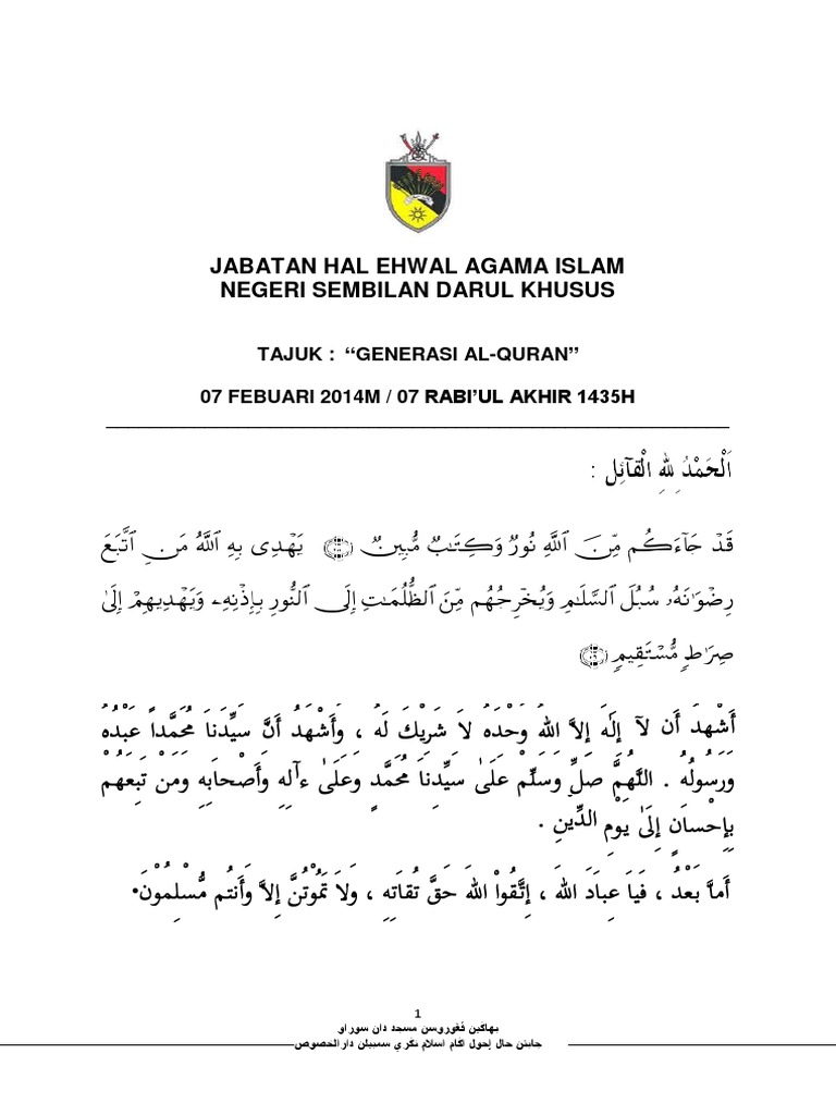2733 20140207 Khutbah Jumaat Generasi Al Quran Pdf